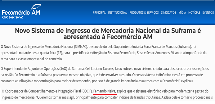 - EX-Coordenador da Unidade de Inteligência de Riscos Fiscais da Suframa, responsável pela mitigação a fraudes e desvio de mercadorias na área da ZFM. (UNIF)